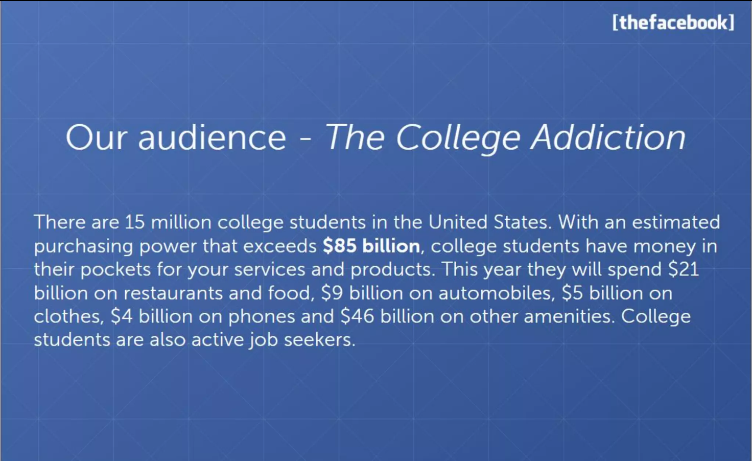 Facebook famously started out as a social media site for college students and, in its early days, was exclusive to Ivy League students. Recognizing its growth potential, the startup quickly expanded to college campuses across the country. Friending people on Facebook became the way students got connected, and the story of the company's eventual rise has become the subject of countless think-pieces and Hollywood movies. No one could have predicted the market Facebook would create, least of all Facebook itself. The company thought that if it could capture even a portion of the spending power of U.S. college students–estimated at $85Bn in 2005– it would be golden.
